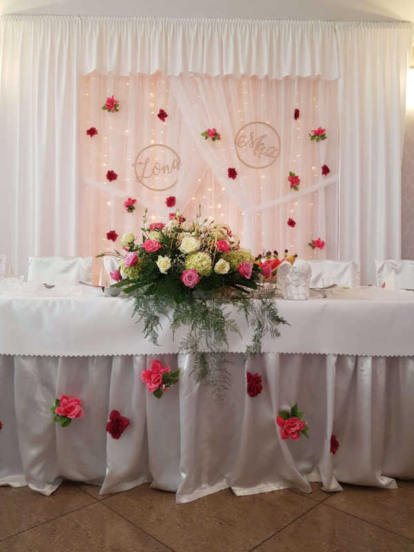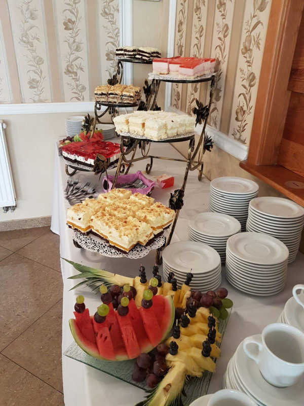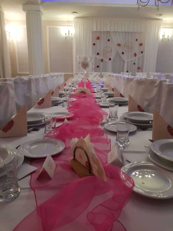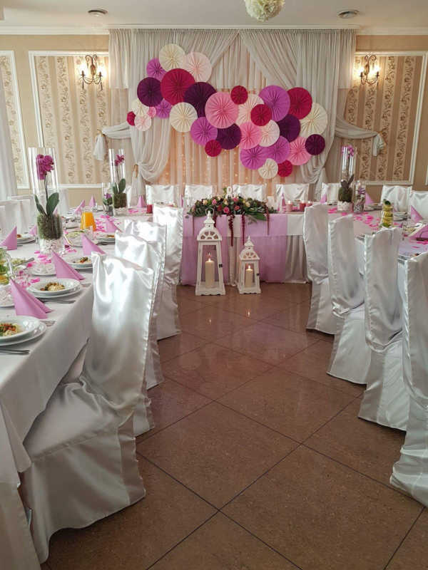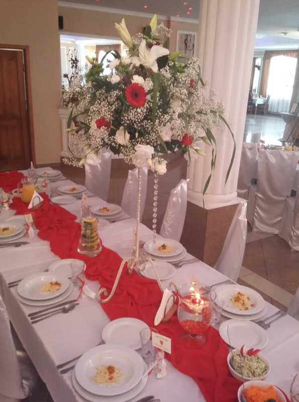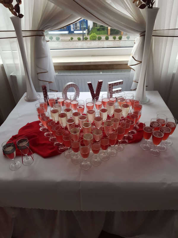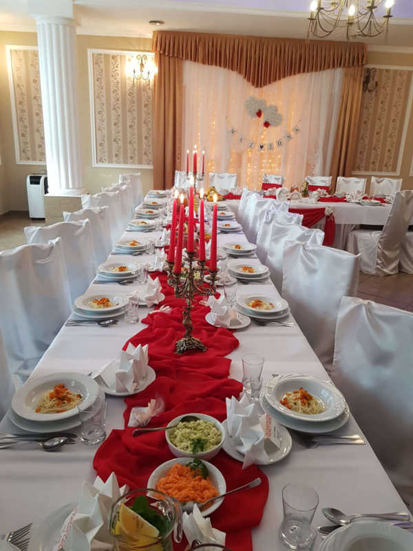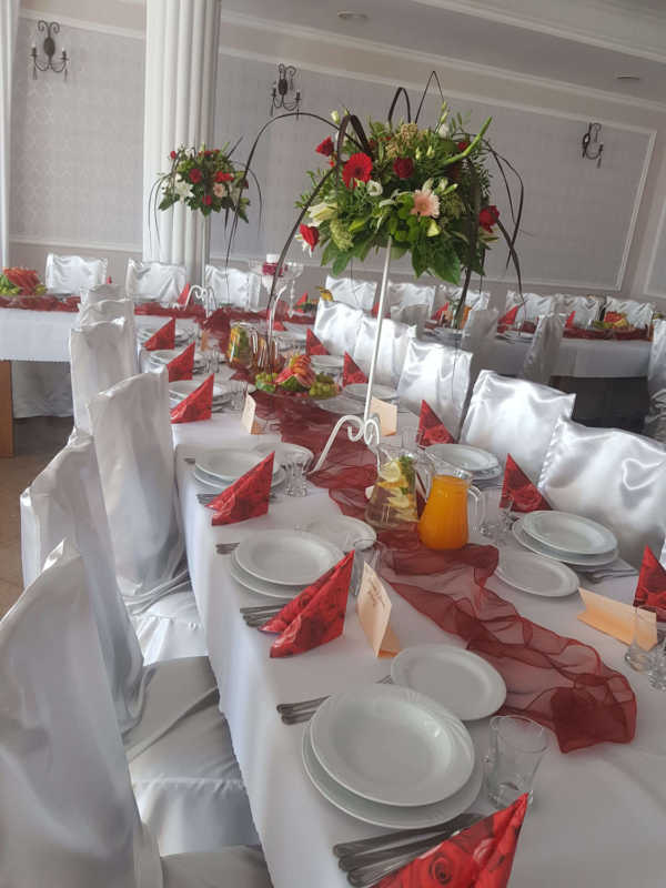 Zapewniamy wyjątkową oprawę wesela gwarantując gorące posiłki, zimne przekąski i różnorakie napoje, które czekają na parę młodą oraz gości, którzy mogą aż do świtu bawić się w pięknie ozdobionej sali weselnej.